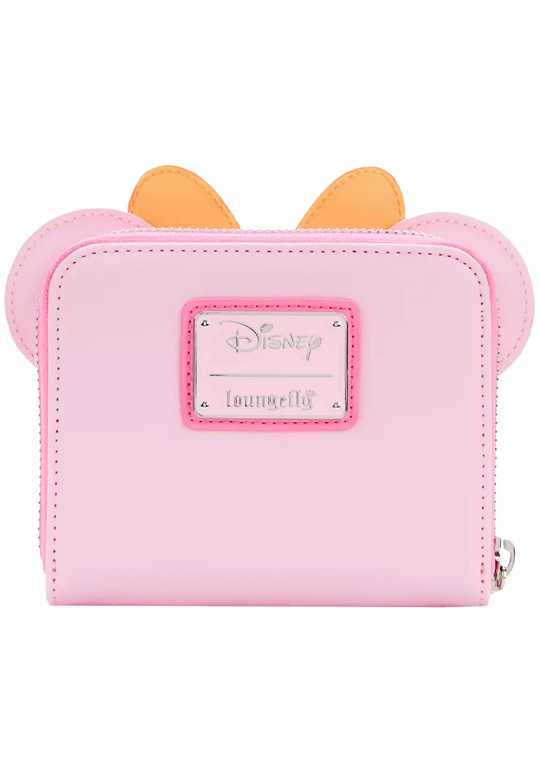 This officially licensed Adult Loungefly Disney Pastel Ghost Minnie Glow in the Dark Wallet is hauntingly adorable! The faux leather wallet is decorated with dark pink graphics of Minnie’s facial features. The top is stitched with ear cutouts and a same-material yellow and pink bow.