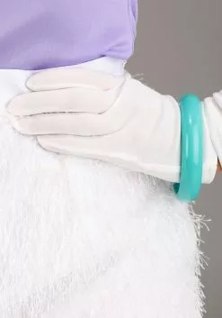If you’re looking to stand center stage in any situation, look no further than this officially licensed Adult Disney Daisy Duck costume. This is a Made By Us design that was inspired by her modern flair and proud panache! The entire ensemble starts with her classic puffy shirt, all in light purple. The attached white sleeves give your arms a feathered look that go perfectly with your tights.
