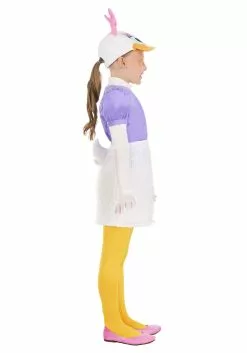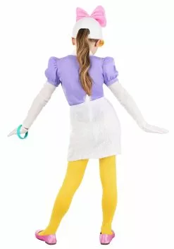 Your child will be ready to flaunt Daisy’s fashion in this Kid’s Disney Daisy Duck costume! Designed and Made By Us, this officially licensed outfit comes with everything they’ll need to be inspired by Daisy’s style. A purple jersey shirt with puffed sleeves is the ensemble’s first piece and includes long white sleeves underneath.