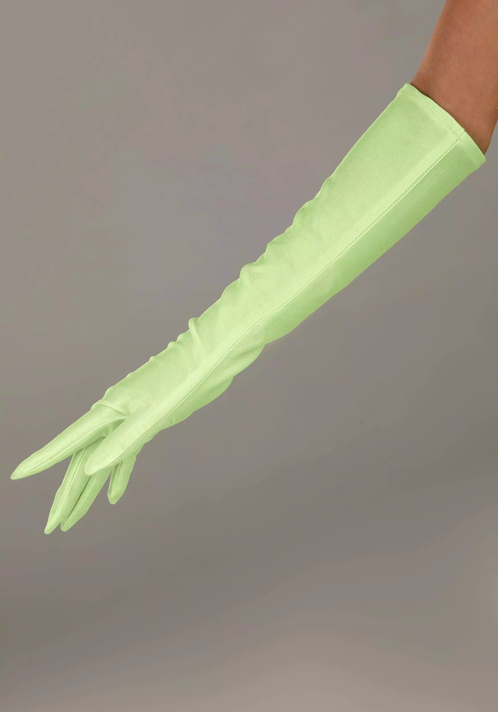 - 100% polyester dress, 88% polyester, 12% spandex gloves
