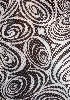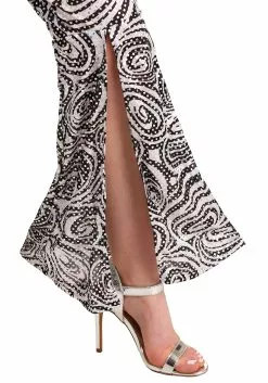 - 100% polyester interlock knit has black and white swirl print w/ iridescent sequins