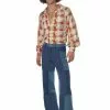 And yet the fascination with it – and the era it belonged to – still endures to this day. Take, for instance, this Women’s Disco Diva Costume…one look at this halter style jumpsuit with its shiny gold metallic fabric and bell-bottom pants, and you’ll be ready to shake your groove thang and do the Hustle out onto the nightclub dance floor! Add some gold metallic platform heels to really get that Boogie on!