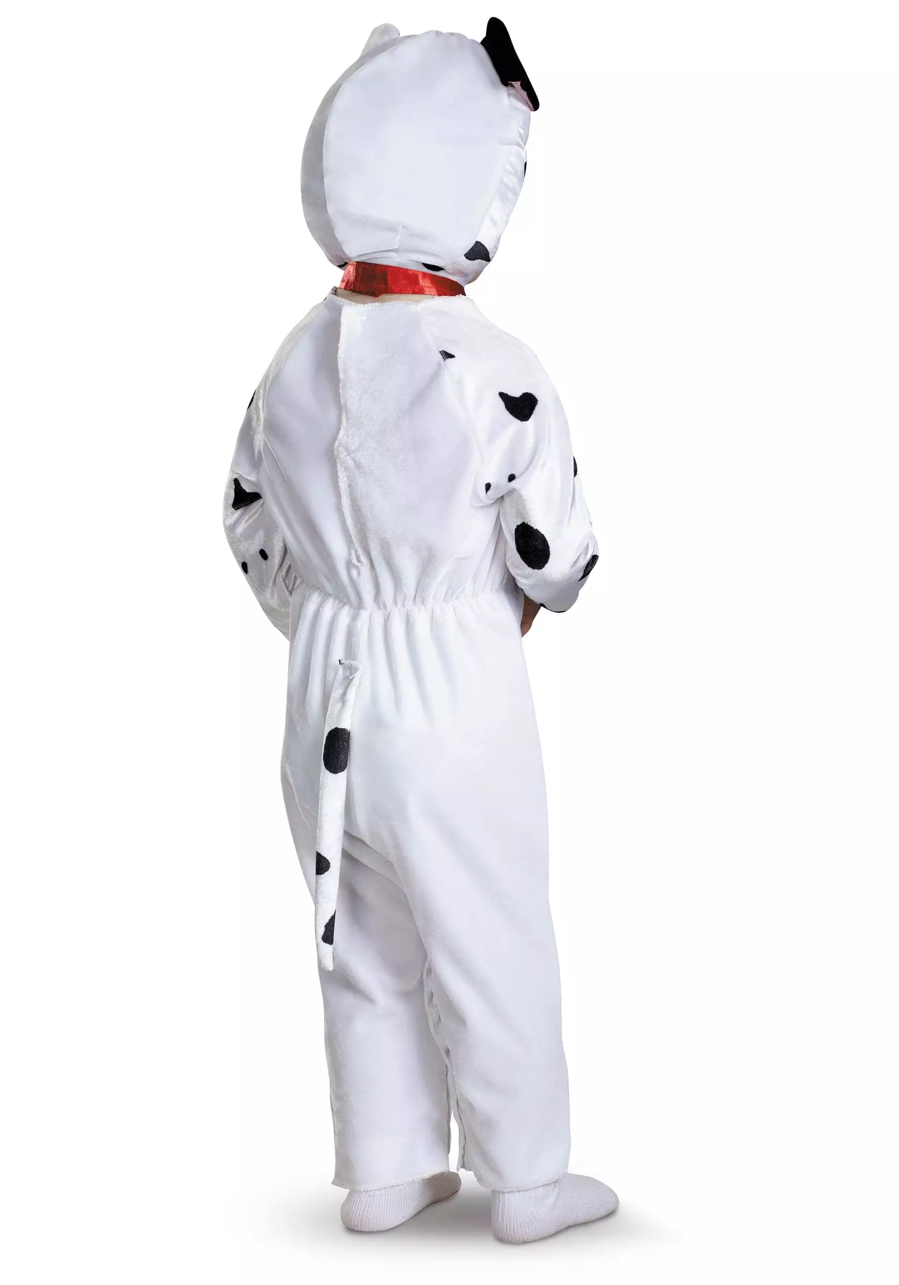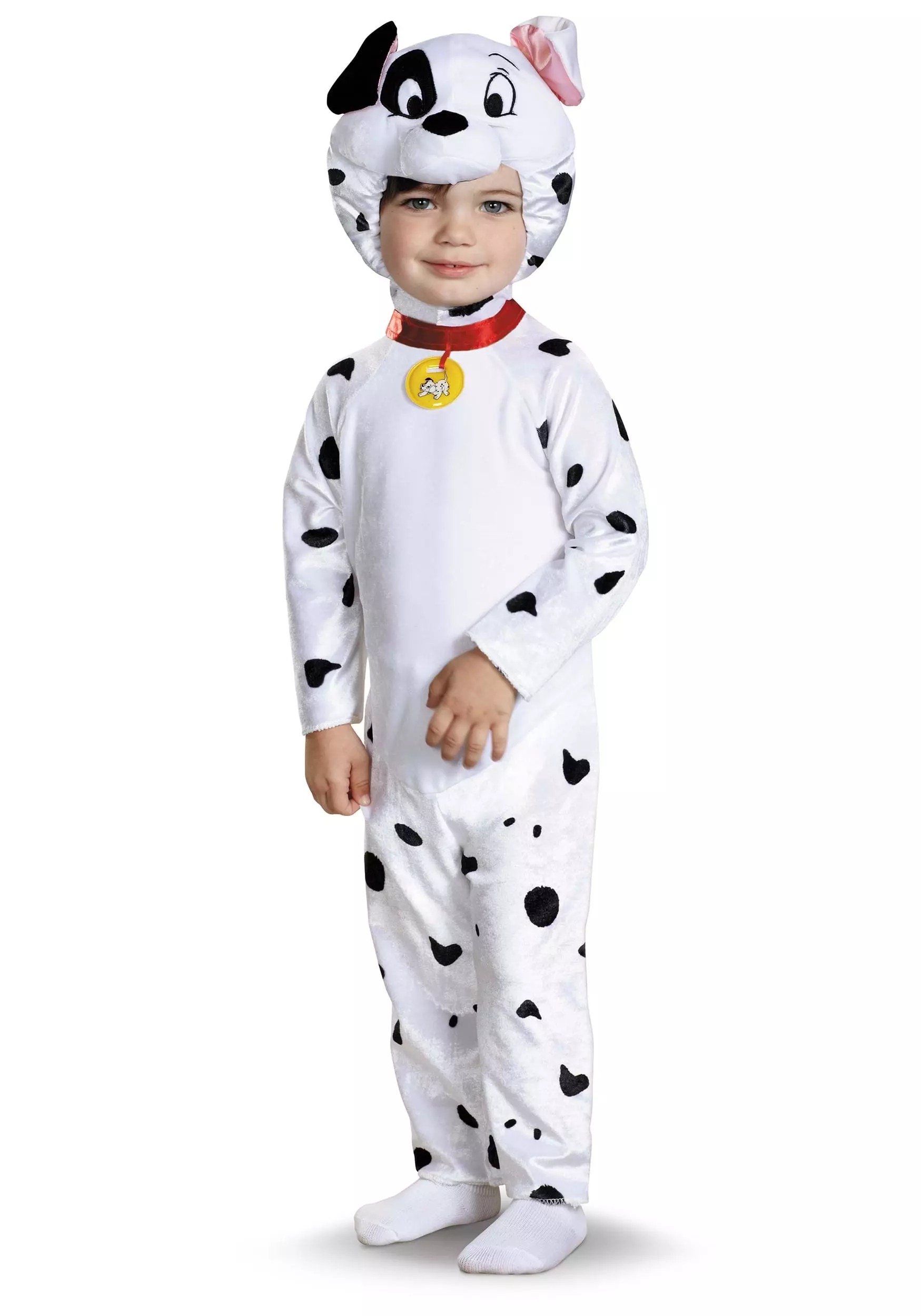 Your baby will be the most adorable puppy in the litter when they wear this 101 Dalmatians Classic Kids Costume. The soft jumpsuit has hook and loop fasteners on the back so your child can easily transform into a lovable pup! It has black spots on the arms, legs, and tail and even features an adorable red collar just like the one in the movie. The ankle and wrist cuffs are designed with a looser fit so your child stays comfortable. The removable hood features an adorable dalmatian face on top, complete with mismatched ears, and fastens under the chin to help it stay on.