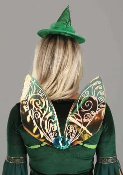 This officially licensed, exclusive Disney Fauna the Fairy Headband & Wings Kit is so pretty that it’s practically magical! A pointed hat with a sparkly crown and a wide green tulle band is attached to a cloth-covered headband so that the hat appears to float on top of your head. The gorgeous vinyl wings feature a lovely design of swirly green and gold, as well as a jewel-like green center, and loop over your shoulders via elastic straps.