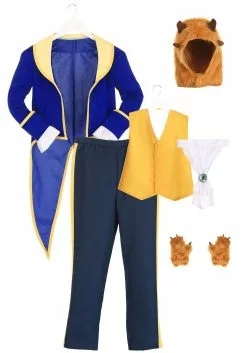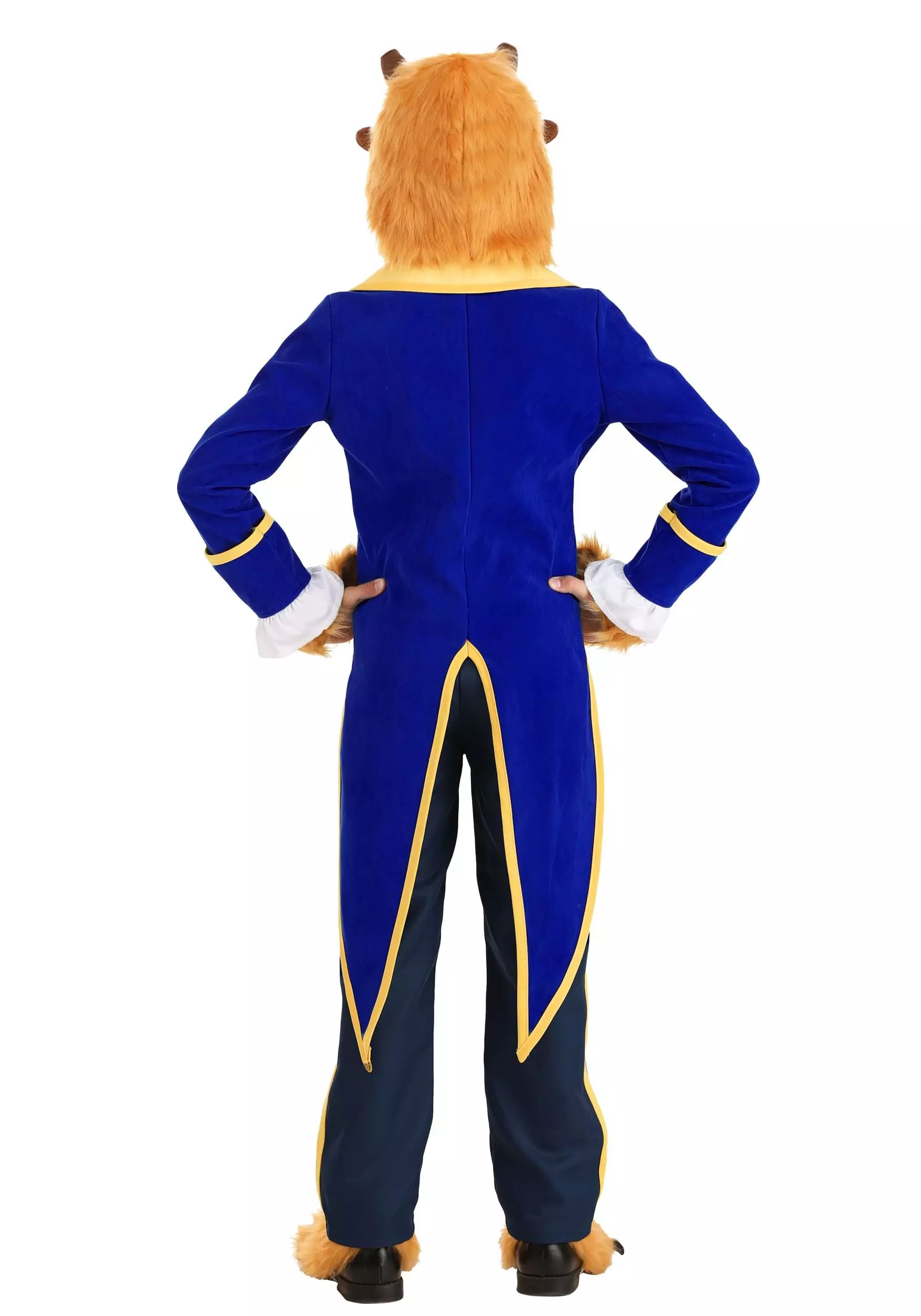This Disney’s Beauty and the Beast Child Beast Costume transforms your little one into the iconic character! The kid’s costume comes with a white jabot and a light blue vest that fit together for a very princely appearance. The matching blue tailcoat has ruffled cuffs and it fits with a pair of buttons in front. The black pants fit with elastic in the waist and have gold detailing on the sides. Finally, to make the outfit complete, the costume comes with a soft, faux fur headpiece to let your little one fully transform into their favorite Disney character!