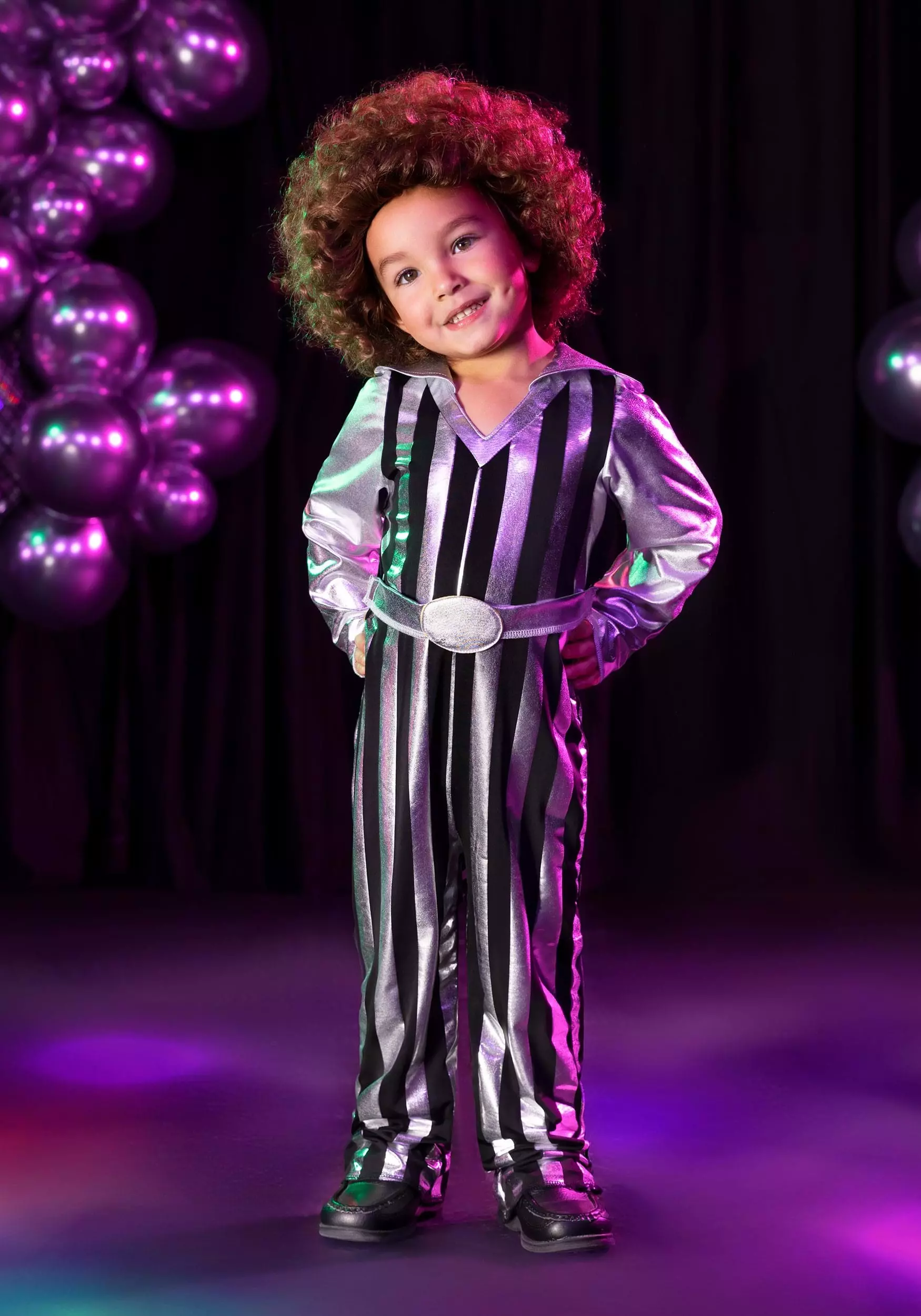 We know that young folks these days like to think they are the first ones to wear jumpsuits, but you know better—a well-worn jumpsuit was a staple of the disco era! This costume is exclusive and features an original silver and black striped, collared jumpsuit so cool, your child will jive with it instantly. Everyone knows a perfect disco look is as much about the attitude as it is the clothes, so teach them to stride into their Halloween party with a daring disco demeanor. You’ll be very proud!