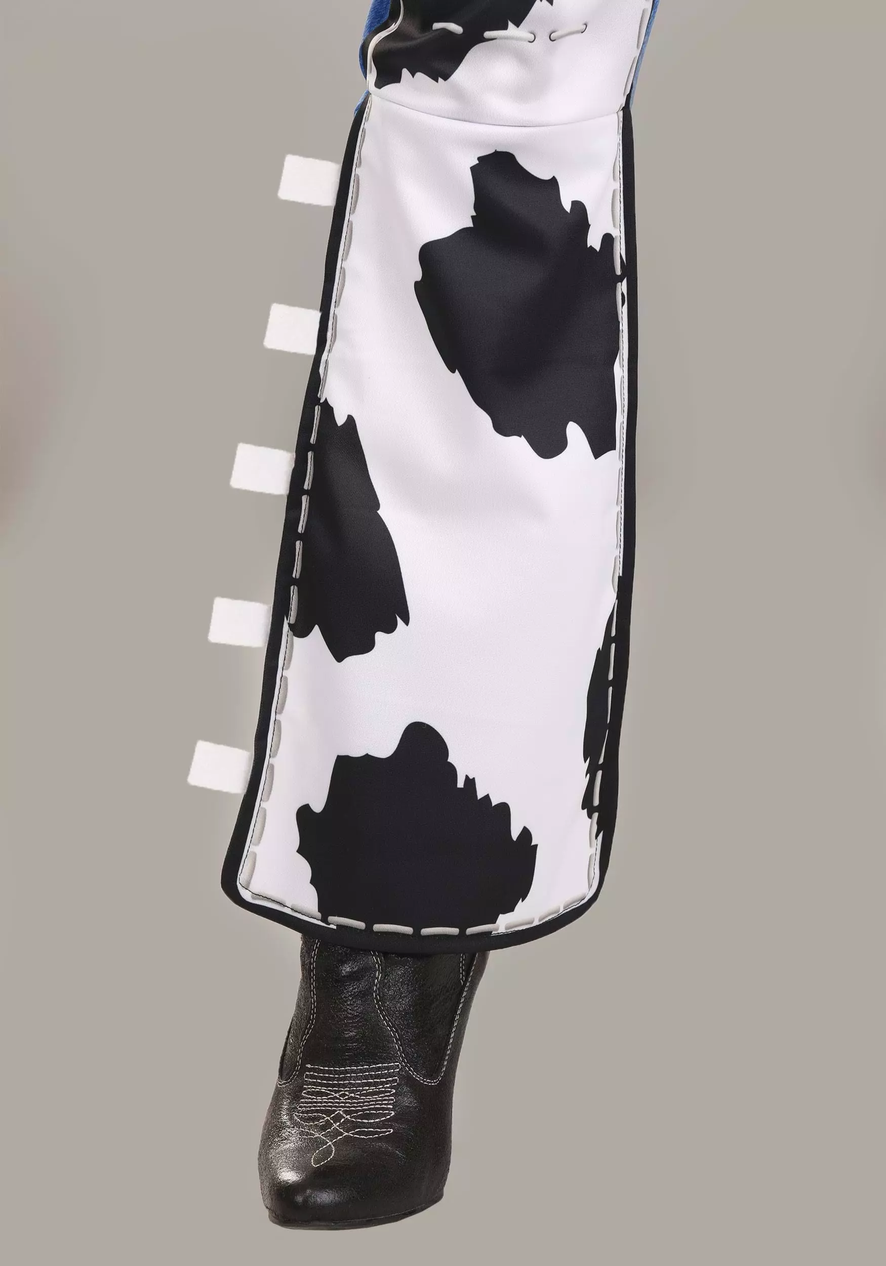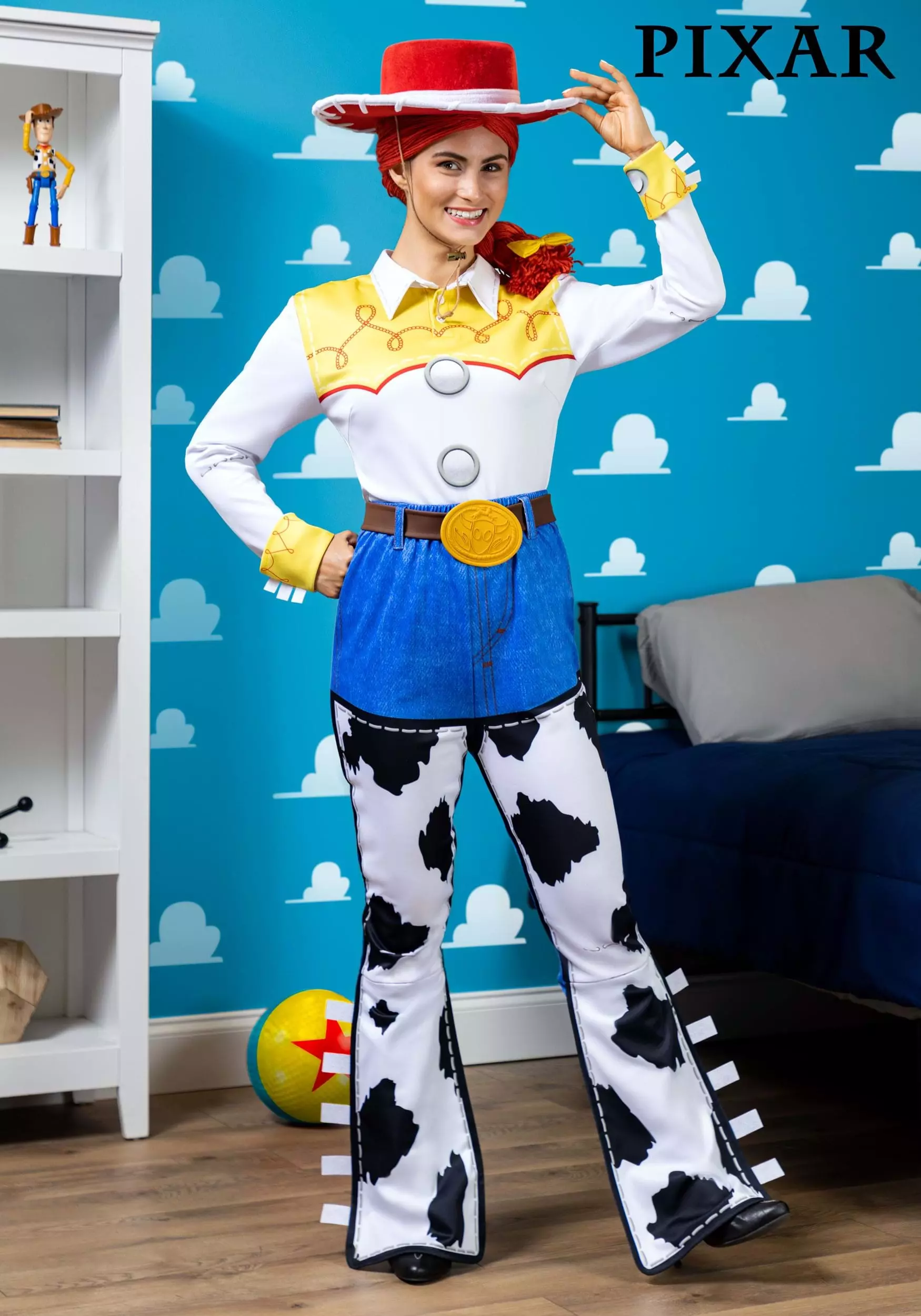 The ensemble begins with a simple shirt that is printed to look as detailed as Jessie’s own blouse. The pants have the appearance of denim and cowhide as well as felt chaps to give you a bit of extra authentic cowpoke style. The faux leather belt cinches your look together and you’ll be in full Jessie mode when you wear her signature hat. Exciting right? Just remember to breathe!