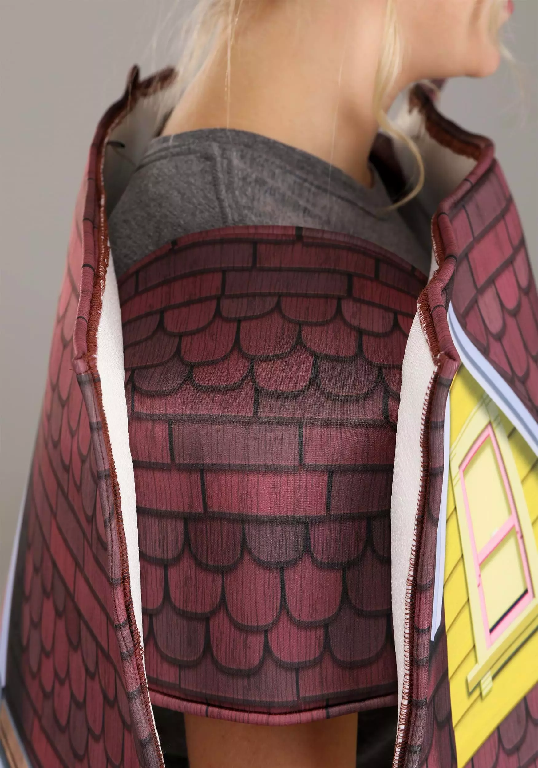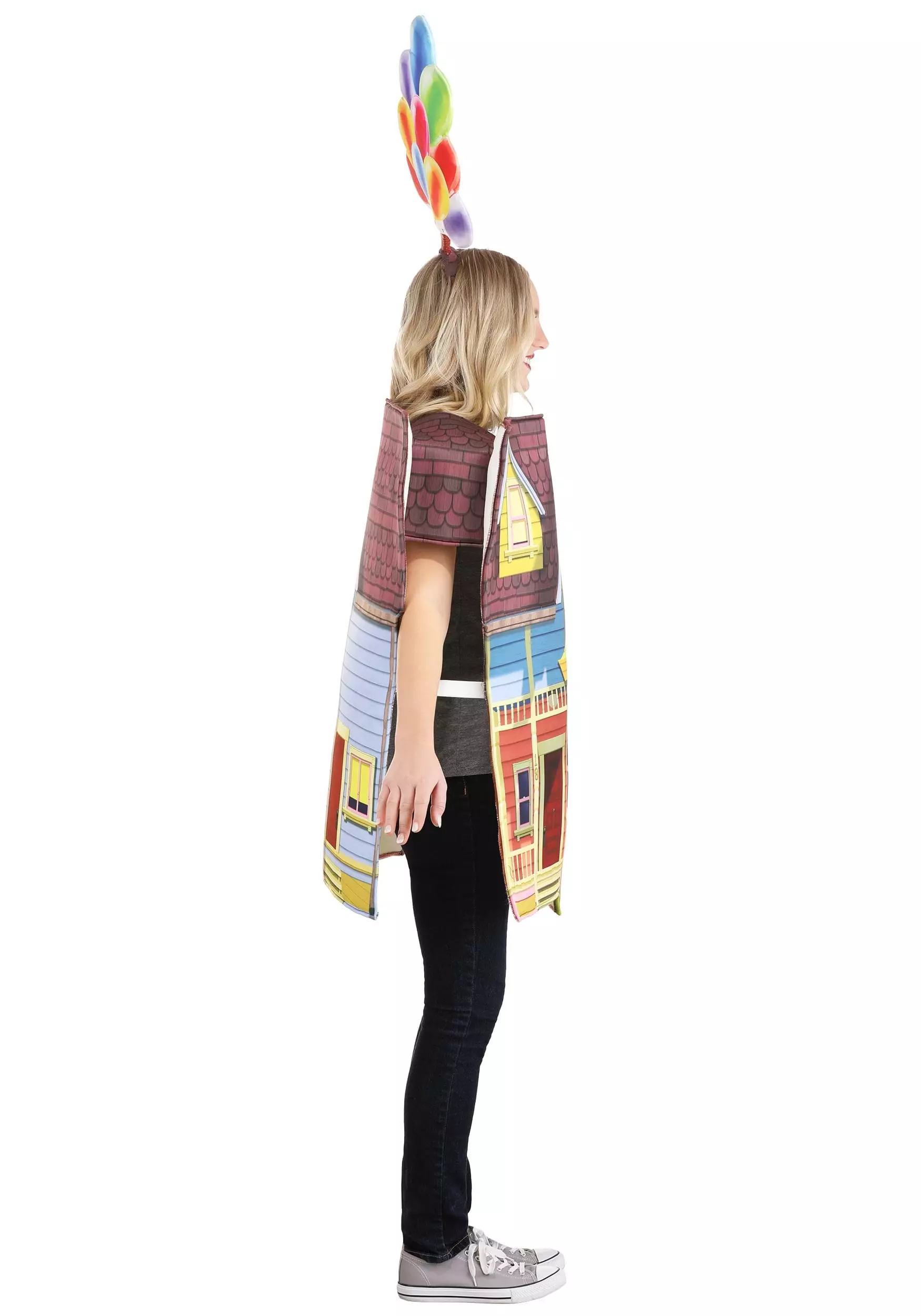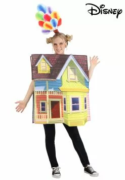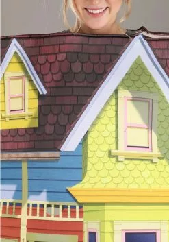 Our exclusive Disney and Pixar Up House Costume is the perfect answer to go big or go home! With this officially licensed ensemble, you can have your cake and eat it too, as it were. Transform into the whimsically colored house of Ellie and Carl Fredricksen with two simple pieces. A lightweight foam and jersey tunic featuring a detailed print of the Fredricksen home is the basis of the costume. It’s held in place by shoulder pads print to mimic the same shingle texture on the front and back panels while additional elastic straps on the open sides provide further security. To ensure the costume really does go big, the included headband stands tall above your head and resembles a portion of the balloons that lifted Carl out of the city and onto adventure!