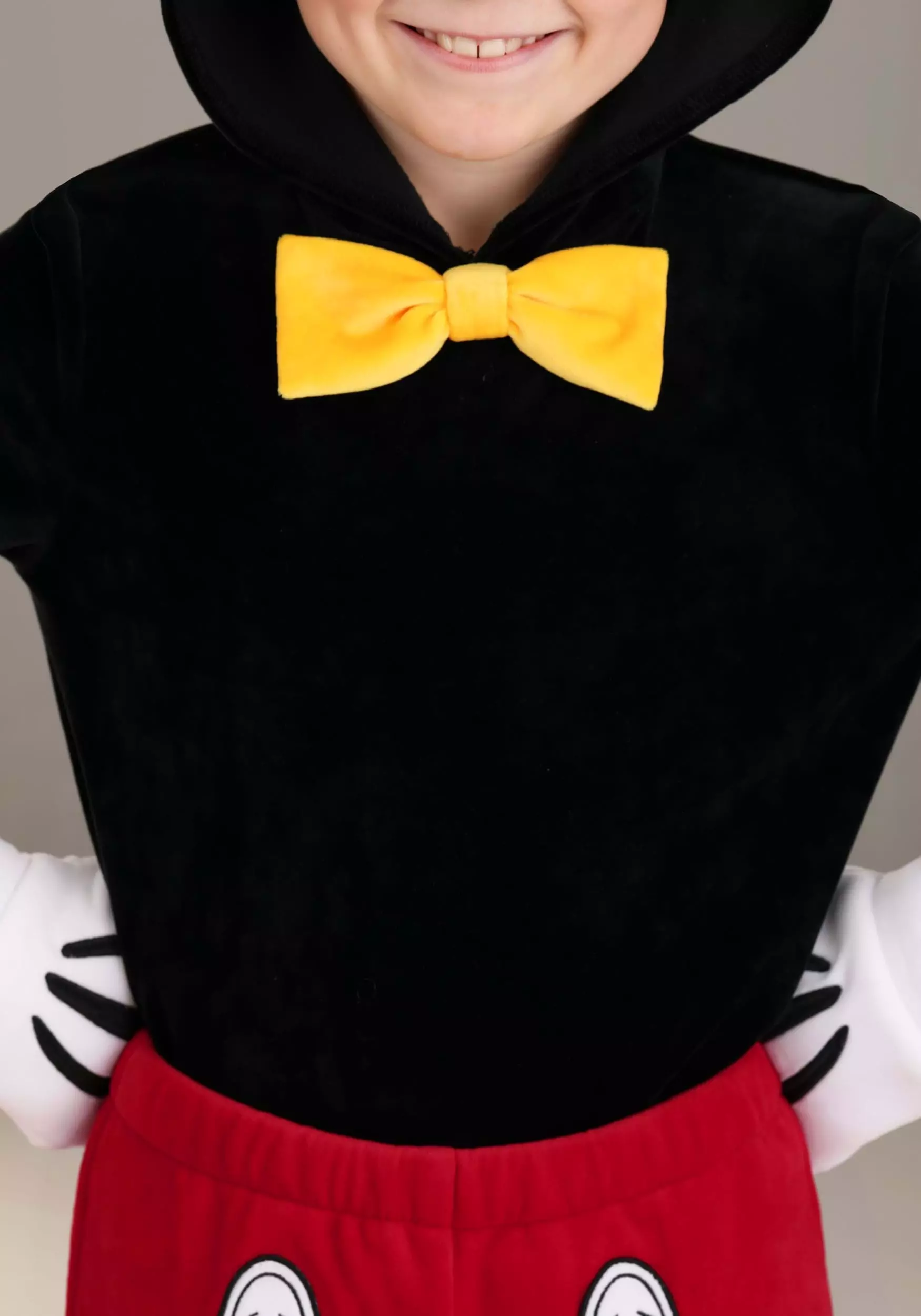 Help your child call out their favorite lines or sing out the letters of his name when they are wearing this officially licensed Kid’s Disney Mickey Mouse costume! This Made By Us outfit starts with a plush shirt featuring a hoodie and Mickey’s ears.