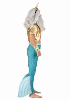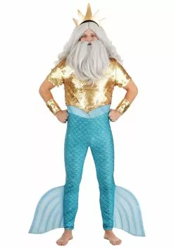 Strolling through Ariel’s kingdom is easy; however, royalty or not, it’s best Triton wear more than would be necessary in the ocean. A gold-sequined top, resembling armor, provides just that! Completing the costume are wrist gauntlets and a five-point crown nearly identical to the sea king’s own.