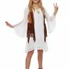 Our costume designers listened to every psychedelic song from the 1960s to get ready for this hippie costume. This Woodstock Hippie costume is what they came up with! The costume comes with a loose fitting shirt that has a deep V-neck and wide bell sleeves. It also has hippie-inspired patterning on the chest and cuffs. The faux suede vest has plenty of fringe on the bottom. Finally, the bell-bottom pants have a colorful stripe pattern and have a comfortable elastic waistband.