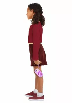 The costume features a maroon cardigan inspired by Penny’s look from the 2022 series and is worn over a stretch-knit top. A matching corduroy skirt zips up the back and goes perfectly with the pair of hair ties for a pair of pigtails. The final piece is a wrist strap with an attached foam-backed phone case. It is all your youngster will need to recreate their favorite Proud character!