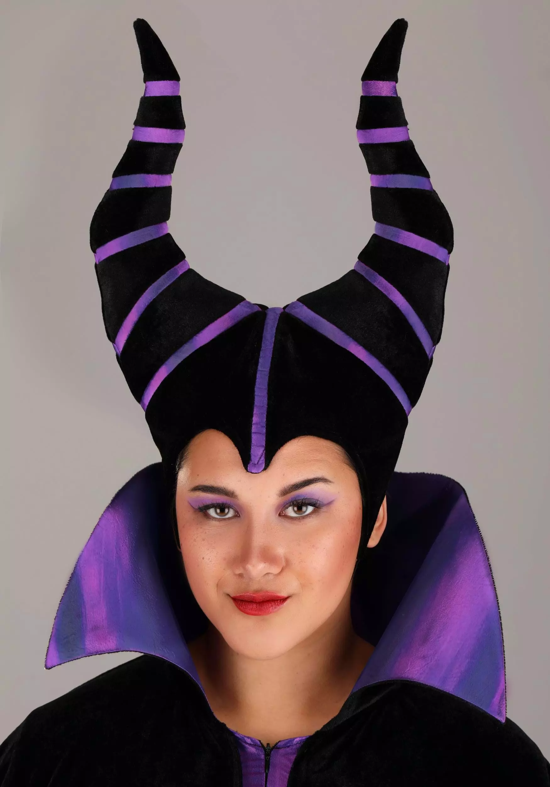 A magenta skirt drapes to the floor thanks to its chiffon construction. Over the stylish skirt Maleficent’s iconic robe is worn. Its black velvet and purple satin design gives the garment a soft, structured look from high collar to flame-like sleeve hems. Dressed in the main pieces, your Maleficent side is sure to shine. But the final piece of this Made By Us ensemble guarantees it. So, don’t forget to secure the soft-sculpted headpiece before joining the Halloween legions!