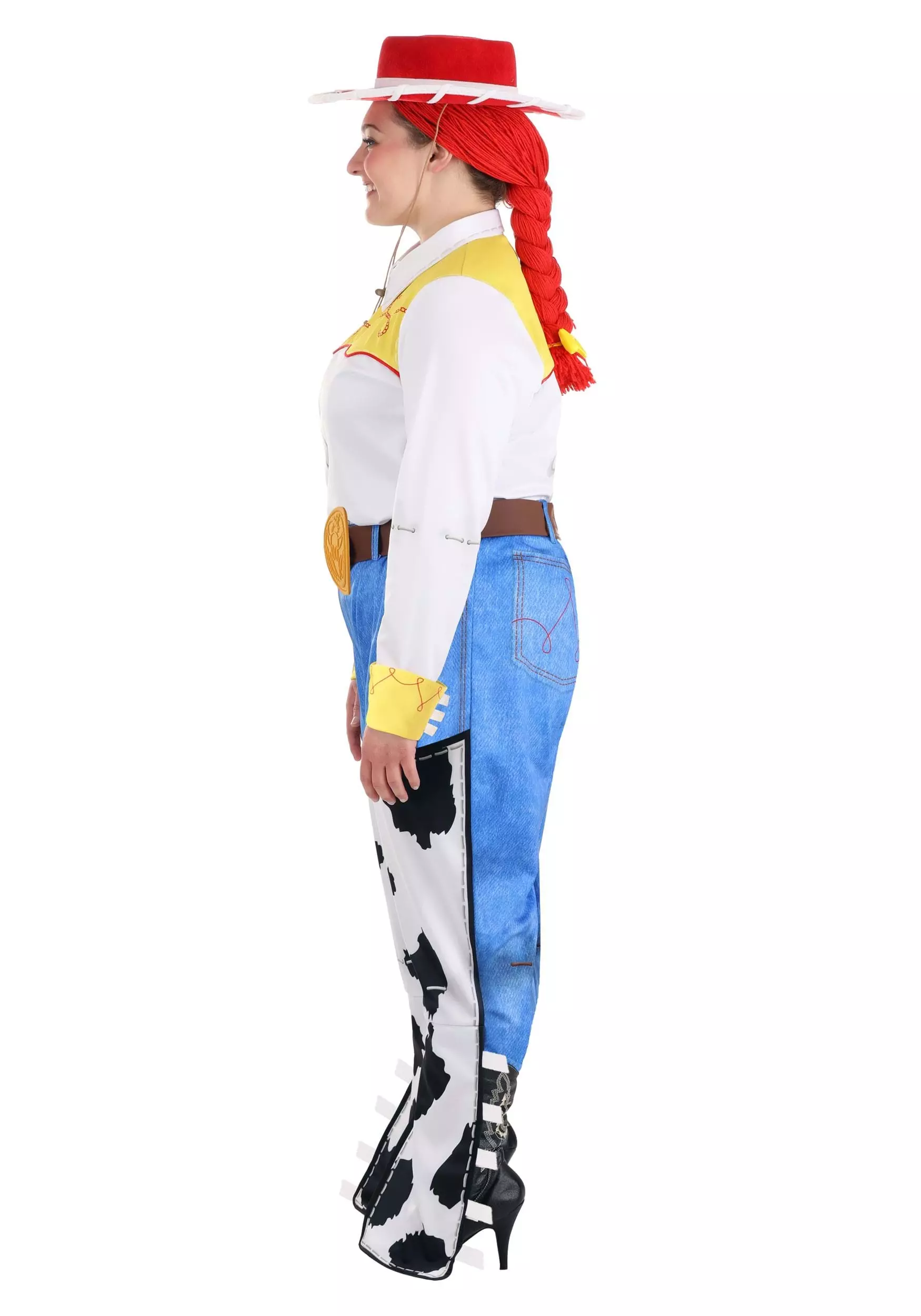 Celebrate your favorite cowgirl’s legacy with our Deluxe Disney and Pixar Jessie Plus Size costume! The Made By Us exclusive recreates Jessie’s iconic cowgirl getup in two easy-to-wear pieces. Jersey knit fabric composes both the top and pants of the costume.