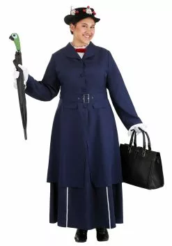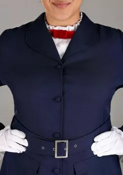 Borrow a little magic from this enchanting nanny with a Plus Size Mary Poppins Costume! The dress is made to look like a white button-down shirt and navy-blue skirt combined. A red bow at the throat adds a pop of color to the top. The matching navy-blue jacket adds a touch of elegance while still allowing the bow to peek through the top, and the belt adds some lovely detail at the waist. And of course, no outfit is complete without gloves and a hat! White gloves and a black hat decorated with flowers and red berries add the finishing touch. When you put on this authentic costume, you’ll be ready for a fabulous adventure with Bert, Jane, and Michael!