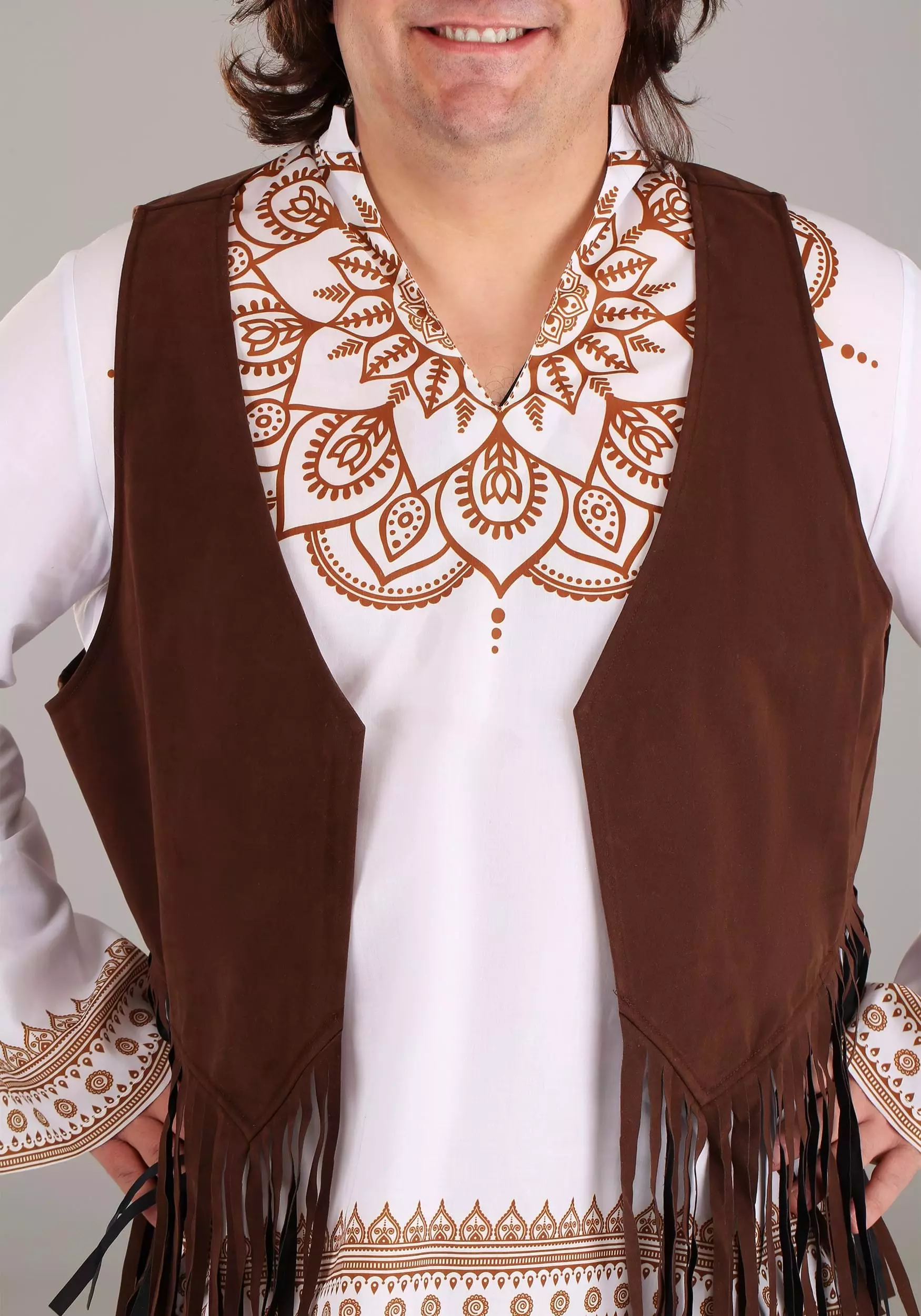 Making sure you are set up to excel in life is very important, and that is why we recommend getting started early with this Men’s Plus Size Woodstock Hippie Costume. This “Made By Us” costume was put together by our hard working and careful artisans, so you will feel good about wearing this for years to come. The included shirt, vest, and pants are what will make you stand out in any crowd. With those classic pinstriped pants and leather vest, we are sure you will make an impression! Besides, what are the odds that thousands of people are going to be wearing the same thing as you?