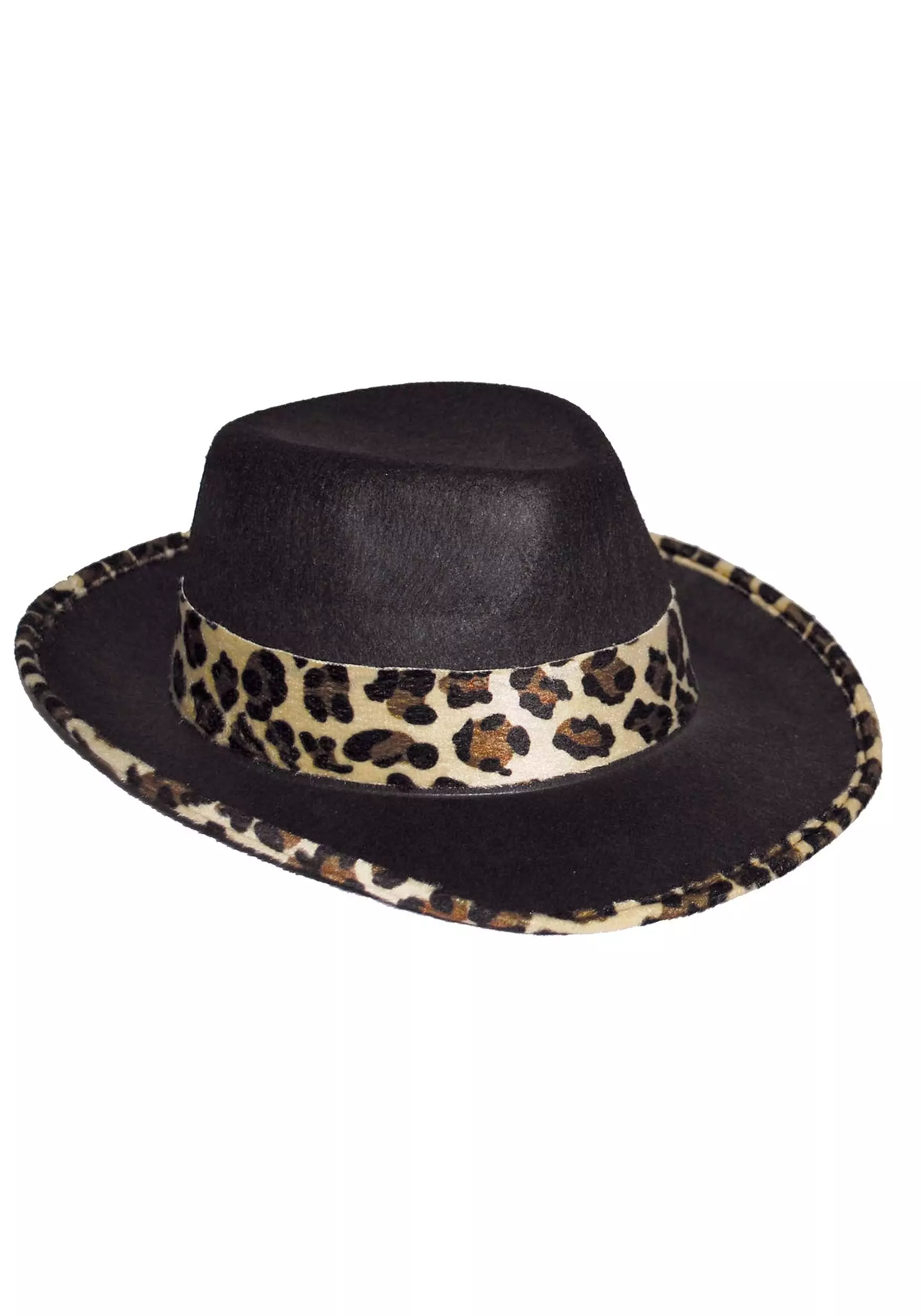 This is a Black Velvet Leopard Trim Pimp Hat.
