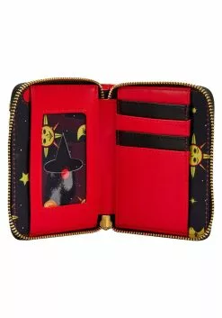 Relive the story of the Sanderson sisters with this officially licensed Loungefly Disney Hocus Pocus Dani Binx Ziparound Wallet! The front of the faux-leather wallet is printed with colorful graphics of a cartoon-esque Binx peeking out of a pumpkin against a backdrop reminiscent of Dani’s Halloween costume.