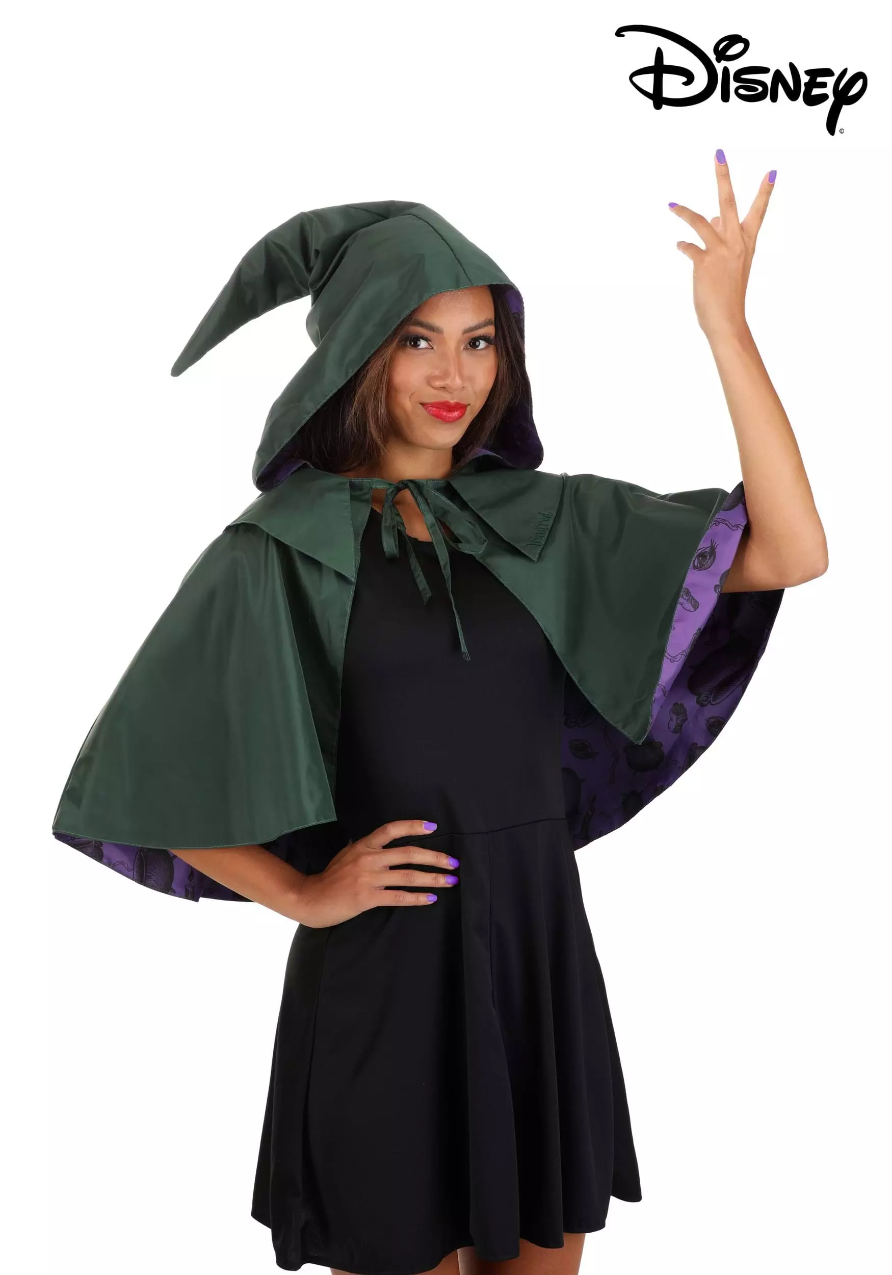 Claim Halloween night as your own when you stride onto the scene with this officially licensed Winifred Sanderson Hooded Capelet. This Made By Us accessory is the perfect way to augment any outfit and is inspired by the iconic appearance of Winifred from Disney’s Hocus Pocus.